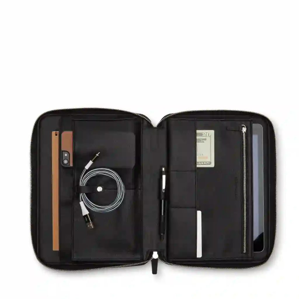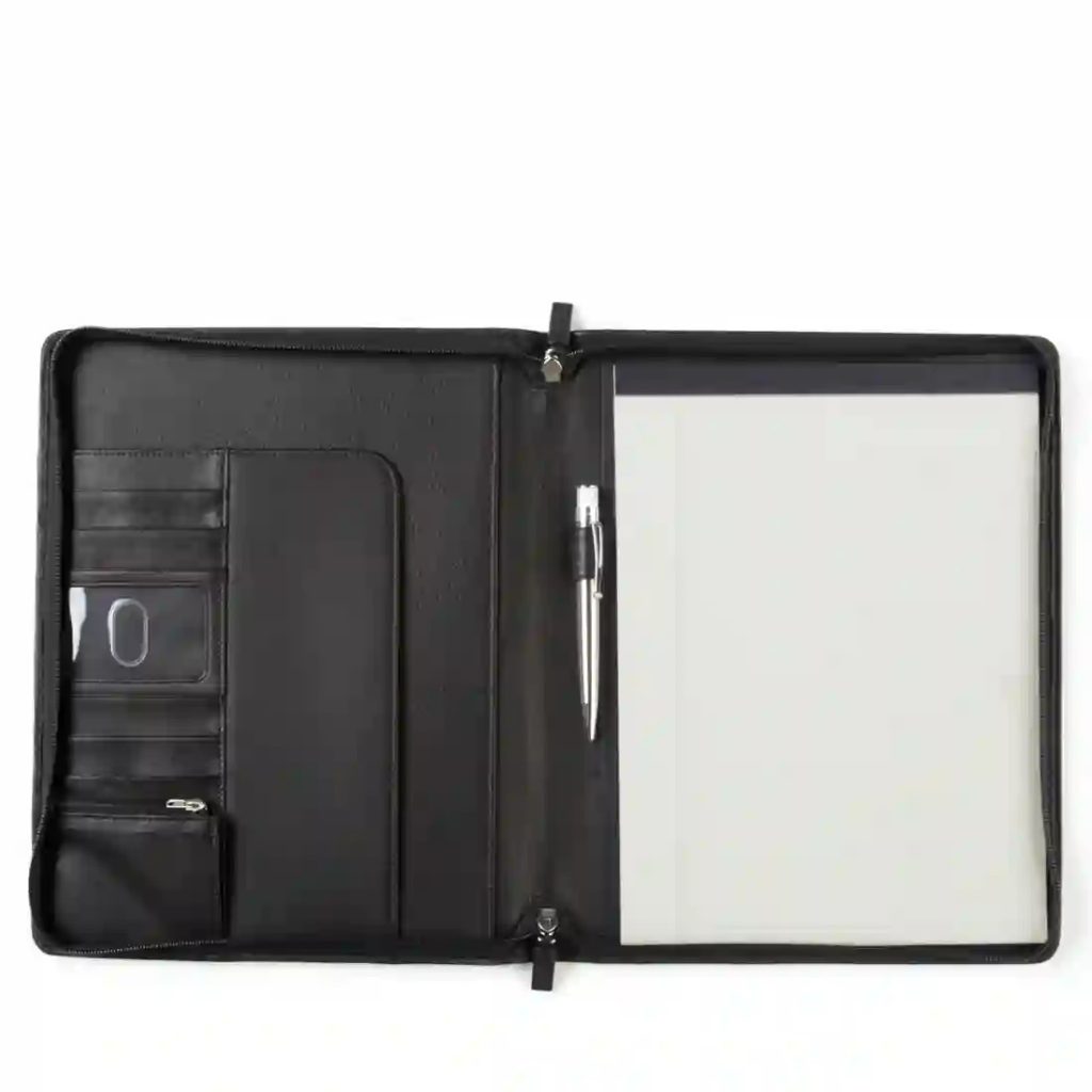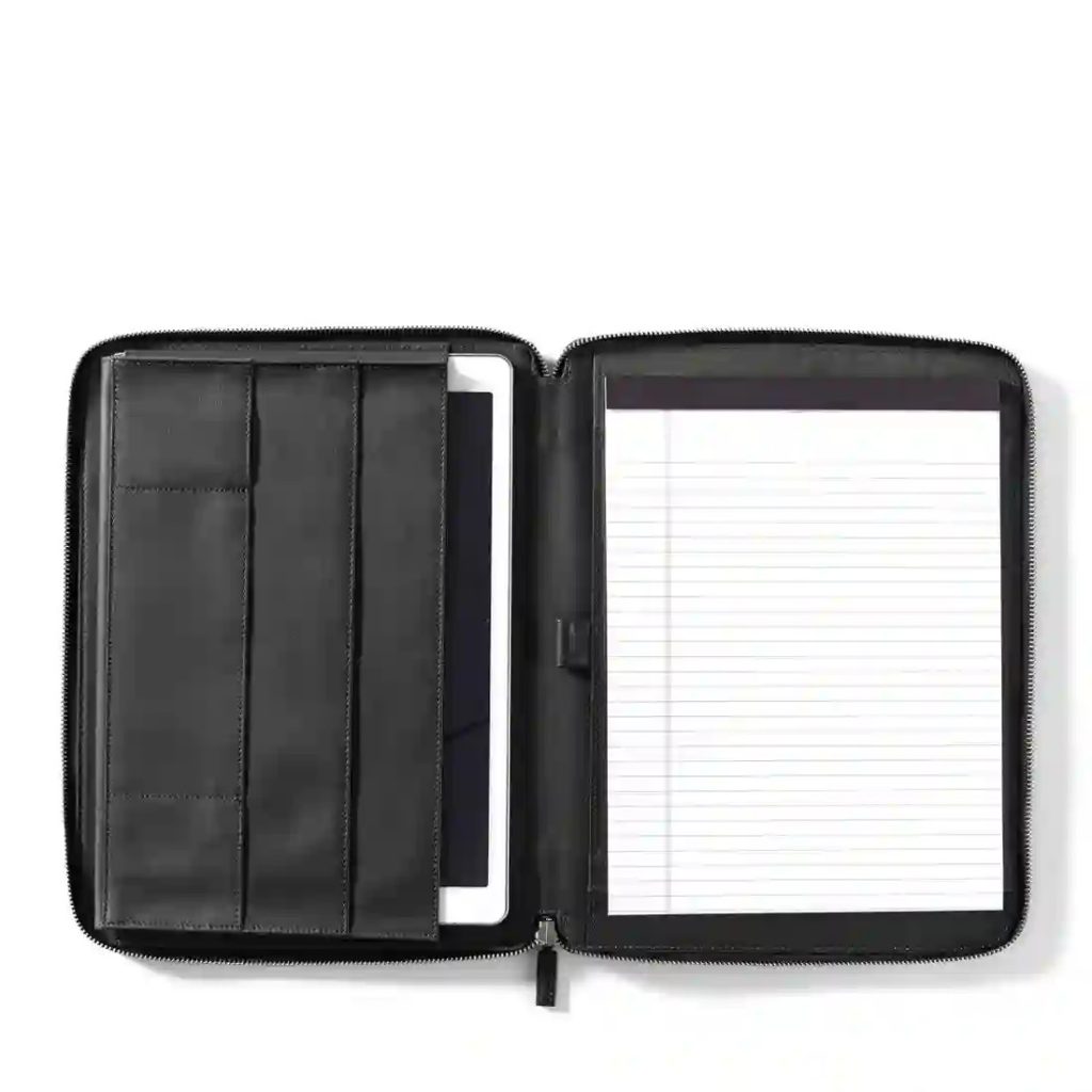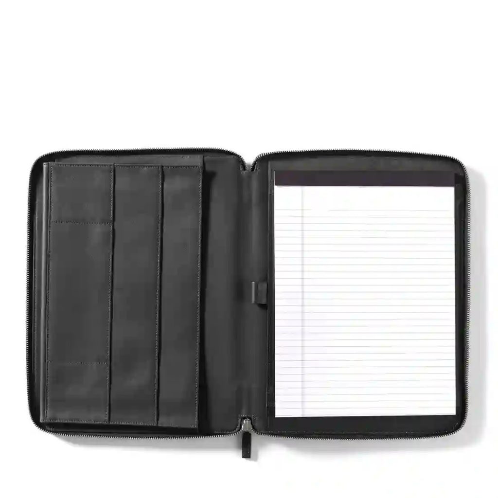 It’s a unique accessory with ample storage for your tiny items, such as business cards. The Classic Zippered Padfolio has a zipper coin pocket, a notepad slot, and a paper pocket. You can keep important documents with ease.