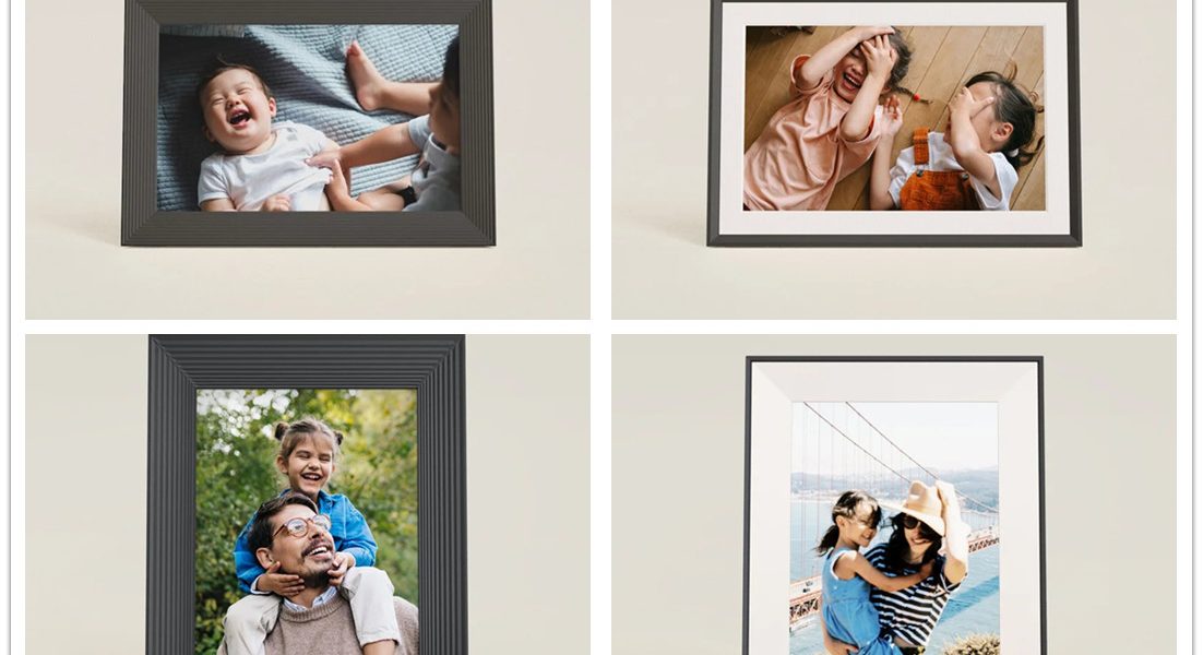 9″ dual-orientation frame, 1600 x 1200 display,Add photos and videos with the free Aura app,Adjust slideshow speed or swipe touchbar to change photos,Smart cropping helps to center photos and fill the frame.