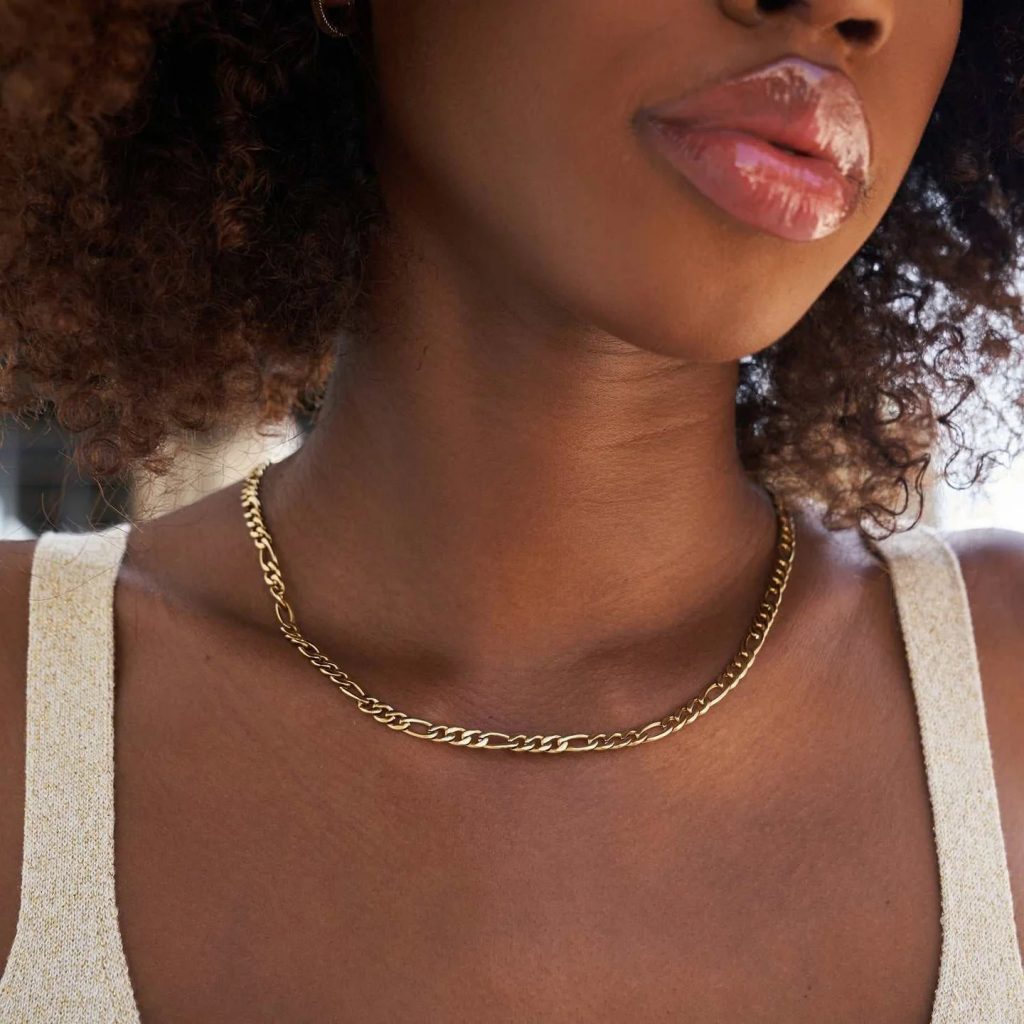 4. Figaro Link Necklace in Yellow Gold – 4mm