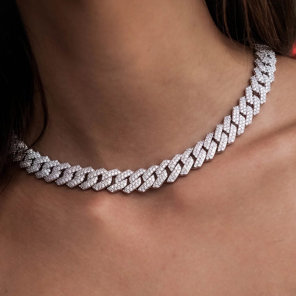 9. Diamond Prong Link Necklace In White Gold – 12mm