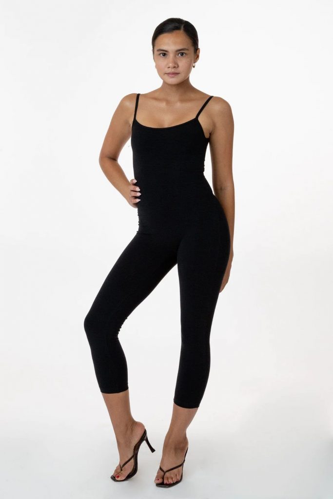 There’s nothing quite like the distinctive allure of the Garment Dye Cropped Spaghetti Unitard. This unitard is crafted from a heavyweight cotton spandex fabric, offering both extra compression and comfort. You can wear it confidently on its own, showcasing its sleek design and figure-hugging silhouette. But on colder days, you can take your style to the next level by layering it with a cozy crewneck sweatshirt