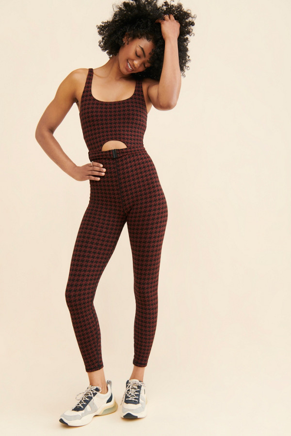 If you are looking for a jumpsuit that can be functional activewear, then this fitted houndstooth-printed jumpsuit can look quite sophisticated. It is quite comfortable and is made up of high-quality elastane, nylon, and polyester.